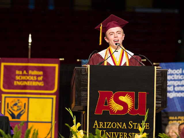 Nathan Gaw was the student speaker at the Fulton Schools’ convocation ceremony after completing his undergraduate degree in spring 2013. Photographer: Jessica Hochreiter/ASU