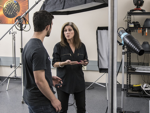 Above: Penny Ann Dolin (right) teaching students in the Graphic Information Technology photo studio. Photographer: Kahn Van Toor/ASU